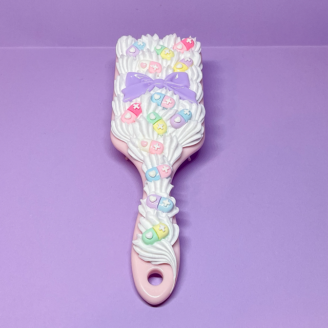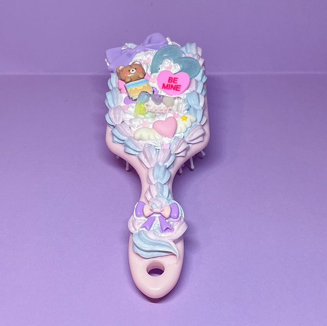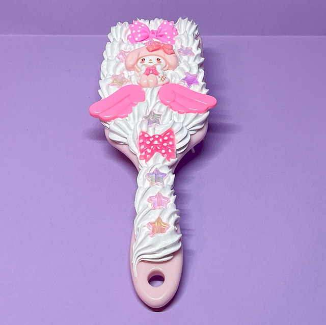 Diese handgemachte Kawaii-Bürste ist mit kleinen Figuren, Schleifen, Perlen und Mini-Leckereien dekoriert. Perfekt für unterwegs, als Geschenk oder einfach als süßes Accessoire auf deinem Schminktisch.