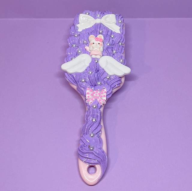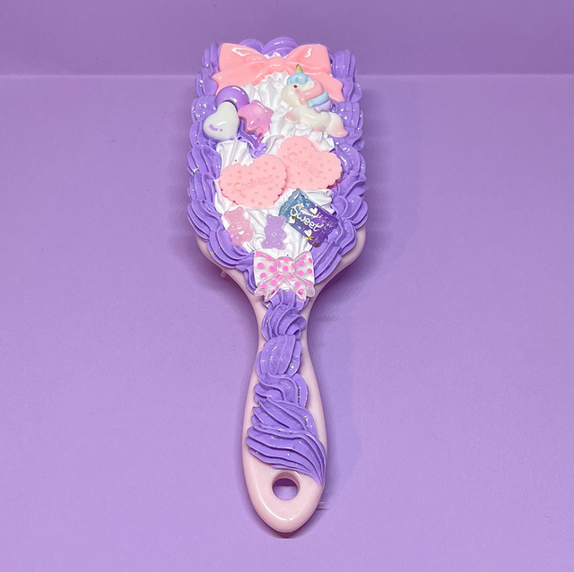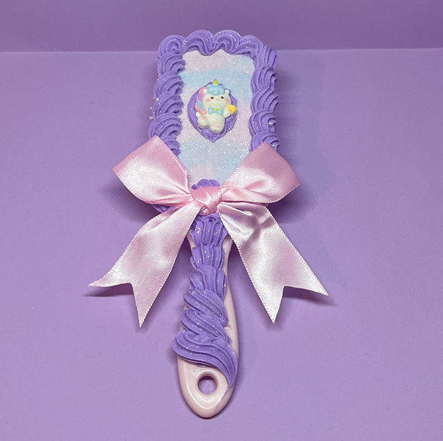 Diese handgemachte Kawaii-Bürste ist mit kleinen Figuren, Schleifen, Perlen und Mini-Leckereien dekoriert. Perfekt für unterwegs, als Geschenk oder einfach als süßes Accessoire auf deinem Schminktisch.