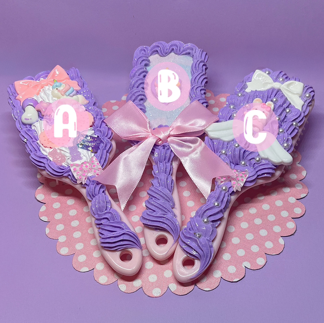 Diese handgemachte Kawaii-Bürste ist mit kleinen Figuren, Schleifen, Perlen und Mini-Leckereien dekoriert. Perfekt für unterwegs, als Geschenk oder einfach als süßes Accessoire auf deinem Schminktisch.