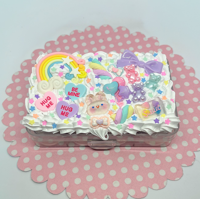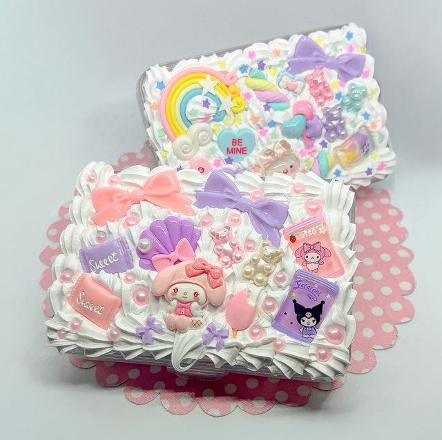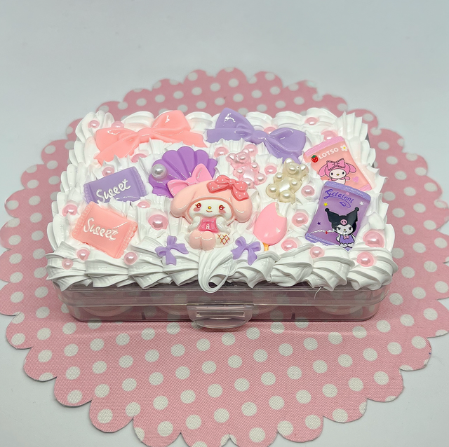 Die Dose ist mit funkelnden Perlen, süßen Charms und fluffiger Decoden-Cream dekoriert, ein echtes Highlight in jeder Tasche.